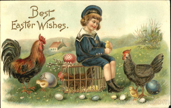 Boy in Sailor Suit with Chickens and Eggs