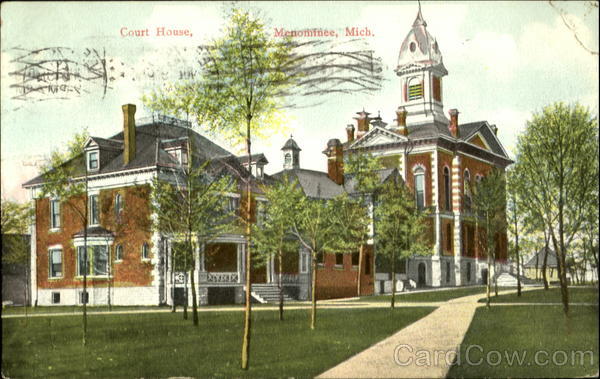 | Tinted illustration of the brick Court House in Menominee, Michigan |