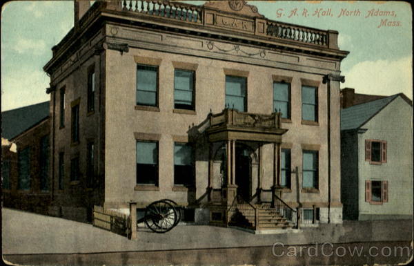 Front: G. A. R. Hall, North Adams, Mass GAR Back: Am. my vacation. Did MASS NORTH JUL23 9-PM 19 12 ADAMS not have time to see you before I came. Hilda Mrs. H. N. Loun, 435 Beach St., Fall River, Mase 252.-1511 2 pts