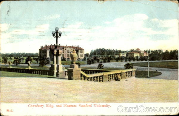 Front: 5815, Chemistry Bldg. and Museum Stanford University. Back: Me in Germany. COMMUNICATIONS California. Regards NA PCK RE YO OCTI D 40-AM SERIES/909 Mein Einley J. Dieseran Sullerton, Pennsa 4-