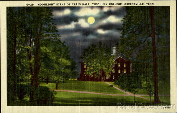 G-29 MOONLIGHT SCENE OF CRAIG HALL. TUSCULUM COLLEGE. GREENEVILLE. TENN. E-5849