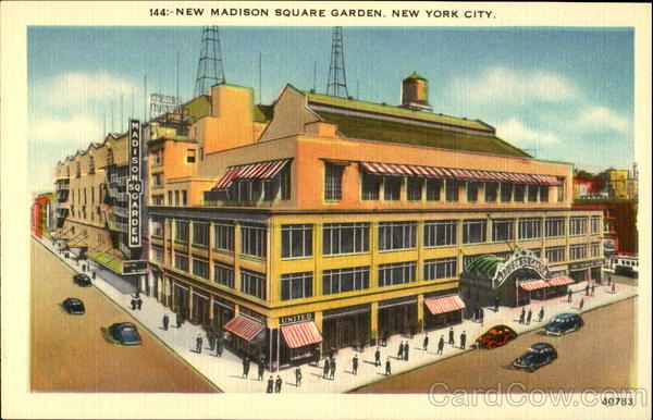 Series 40783 144:-New Madison Square Gardem, New York City. Madison Square Garden is the principal sports arena in the U.S.A. A great number of major sporting events are held here every year. ANnual features are the Circus Rodeo, Six-Day Bicycle Races, etc. Seating capacity 17,000 |