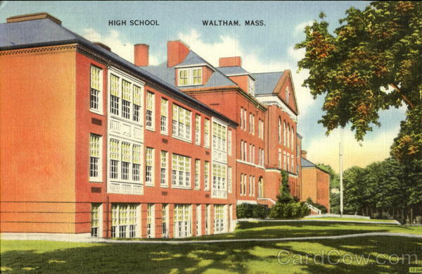 Front: HIGH SCHOOL WALTHAM, MASS. 12 264 Back: COLOUR PICTURE PUBLICATION, CAMBRIDGE, MASS., U. S. A.