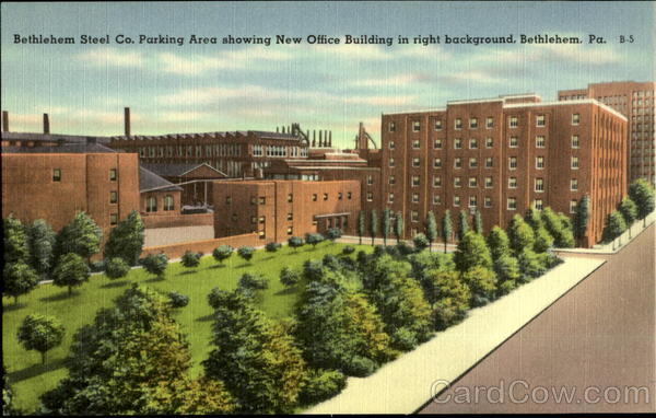Front: Bethlehem Steel Co. Parking Area showing New Office Building in right background. Bethlehem. Pa. B-5 Back: THE MEBANE GREETING CARD CO., WILKES-BARRE, PA. 78889