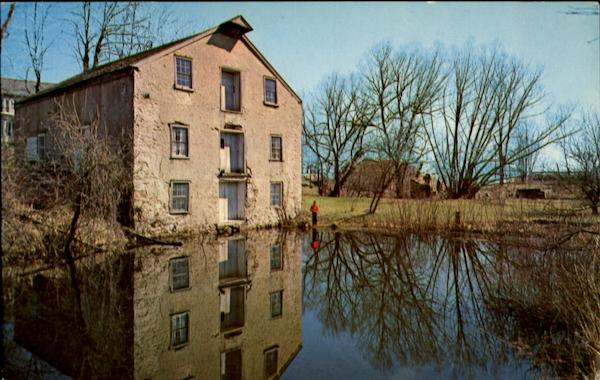 In 1831 The Morris Canal was an important artery of transportation from Phillipsburg to Newark, N.J. This scene shows the Cassedy Canal Store at Waterloo. It is one of the few sections of the canal which still contains water |