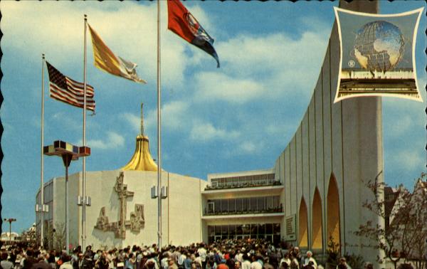 Series DT-87420-B This oval-shaped building, topped by a cross, has as its theme "The Church is Christ Living in the World". It contains the most important work of art at the Fair: Michaelangelo's 465-year-old masterpiece in carved Carrara marble, The Pieta Manhattan Post Card Pub. Co. Inc |