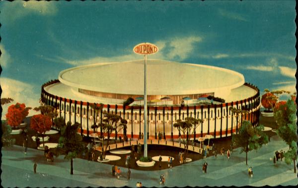 Series 80424-B The Du Point Pavilion New York World's Fair 1964-1965 "Wonderful World of Chemistry" In two theaters and a large display area, live actors and actresses, motion pictures and demonstrators will present the newest contributions mad by chemical science to "Better Things for Better Living...through Chemistry." Manhattan Post Card Pub. Co. Inc |