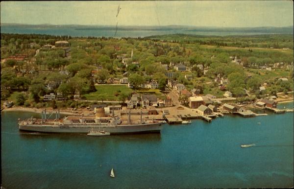 Air view of Castine, Maine, showing the "STATE OF MAINE", training ship of the Maine Maritime Academy