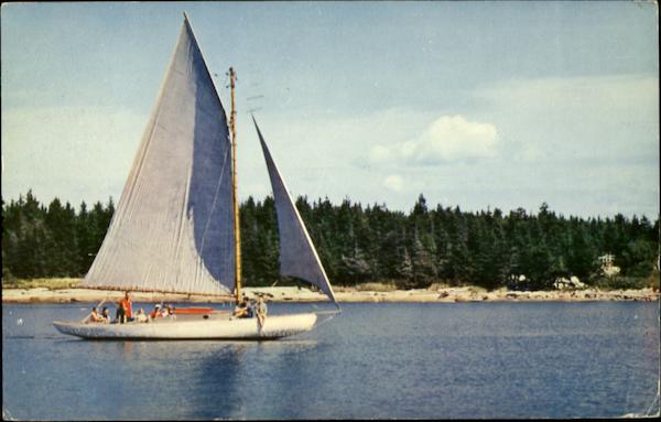 Gentle breezes today. Osprey II out for a day's sail with guests and lunch aboard. Wonderful fun and relaxation! P. O. Sunset, Maine