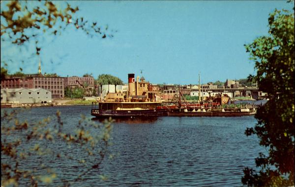 DISTRIBUTED BY MAGAZINES INC., BANGOR, ME. SCENE ON THE PENOBSCOT RIVER BANGOR, MAINE CURTEICH COLOR R 3-D NATURAL COLOR REPRODUCTION (REG. U. S. A. PAT. OFF.) 5DK-1502