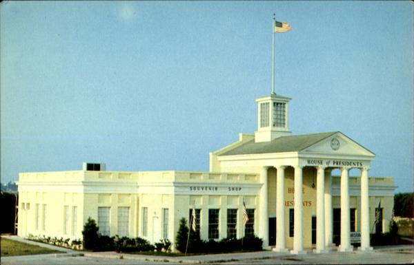 Front: SOUVENIR SHOP HOUSE of PRESIDENTS HO E RES NTS USEU Back: The HOUSE of PRESIDENTS Clermont, Florida All U.S. Presidents in Wax, Lifesize. Electronic Tour. An Educational Show - 30 Minutes 99733 SCENIC SOUTH CARD CO., BESSEMER, ALA. 35020