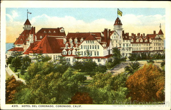 Front: 4315. HOTEL DEL CORONAD0, CORONADO, CALIF. Back: A-8215 MADE IN USA AND ISLAND POSSESSIONS, CUBA, CANADA AND MEXICO 400 PUBLISHED BY H. L. CHRISTIANCE, SAN DIEGO, CALIF.