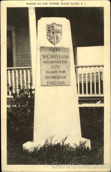 MARKER ON SURF CORNER, BLOCK ISLAND, R. I.