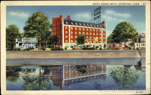 Front: HOTEL ROGER SMITH, STAMFORD, CONN. 37 EL EL HTIM2 AH HITRS OSER JA-H823 Back: "C. T. ART-COLORTONE," MADE ONLY BY CURT TEICH & Co., INC., CHICAGO, U.S.A.