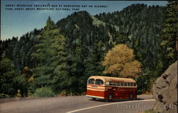 SMOKY MOUNTAIN TRAILWAYS BUS AT NEWFOUND GAP ON HIGHWAY