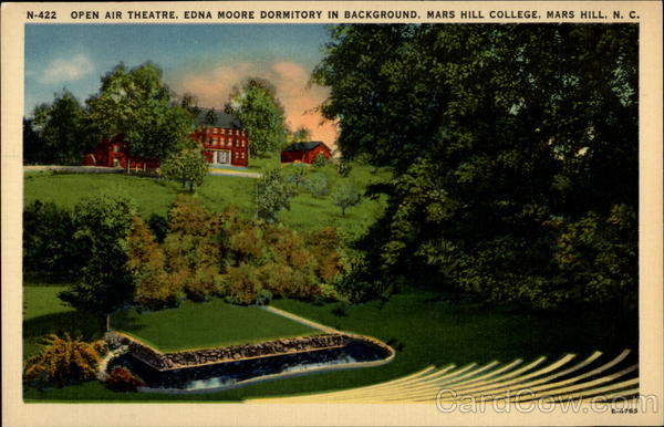 Mars Hills College, founded 1856, is the oldest college in Western North Carolina and is the largest junior college in the Southeast. The college is located in the picturesque town of mars Hill, which has an elevation of 2330 feet. the beautiful campus includes 100 acres, On which are 14 buildings for administration and residence and a number of cottages |