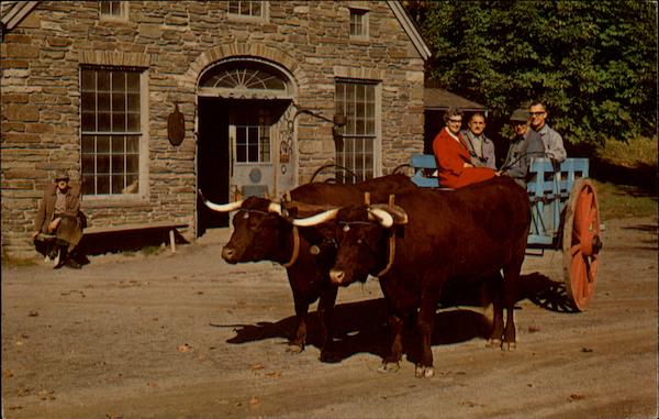 OXEN AND BLACKSMITH SHOP FARMERS' MUSEUM COOPERSTOWN, NEW YORK CURTEICHCOLOR Ⓡ 3-D NATURAL COLOR REPRODUCTION (REG. U. S. A. PAT. OFF.) 5DK-1298