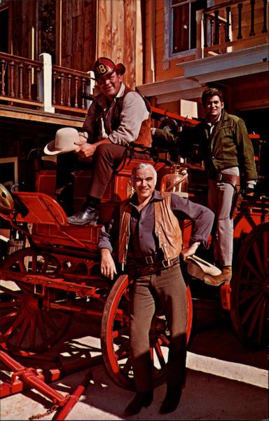 | Series SC11431 Ponderosa Ranch of "Bonanza" TV fame. Box 18, Incline Village, Nevada 89450. Rare horsedrawn equipment on display at the Ponderosa Fire House. The legendary Ranch house home of the Cartwrights, amusements, horseback riding, hayrides, antique auto and carriage collection |