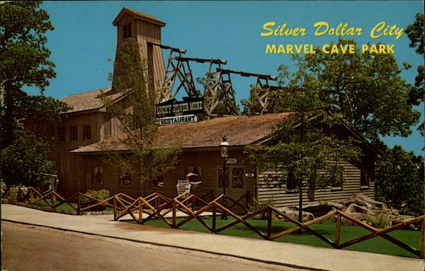 Series O.411, 4DK-1805 Picturesque Silver Dollar City Marvel Cave Park in the Famesd Ozarks. The Lucky Silver Mine Restaurant is well known for its good food and one of the popular places in the entire area. Located in the Shepherd of the Hill Country near Branson, Missouri and Table Rock Lake Silver Dollar City – Marvel Cave Park is the major attraction in the Ozark |