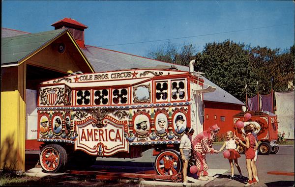 Series P34483 CIRCUS WORLD MUSEUM IN BARABOO, WISCONSIN The "America" tableau wagon built for Barnum & Bailey in 1903, later used as a bandwagon and now housing one of the last of the noisy, screeching old steam calliopes, mad its ponderous way up and down the pared routes of nearly every city in America and Europe during the golden era of colorful circus pageantry H. H. Bennett Studio |