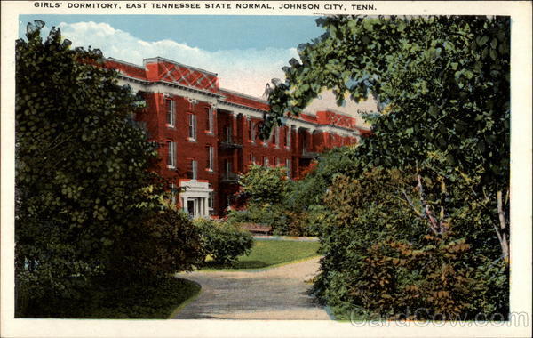 Front: GIRLS' DORMITORY, EAST TENNESSEE STATE NORMAL, JOHNSON CITY, TENN. Back: 122490 0 0 0 0 0 0 PUB. BY KNOXVILLE ENGRAVING CO., KNOXVILLE, TENN. FICHNOR DUALITY VIEWS- THIS SPACE FOR ADDRESS ONLY