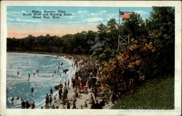 Happy Summer Time, Beach Bluff and Bathing Scene, Onset Bay, Mass