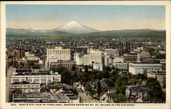 Front: NAAA! MF Welster Co. Portland OTC. 369. BIRD'S EYE VIEW OF PORTLAND, OREGON SHOWING MT. ST. HELENS IN THE DISTANCE. Back: CHAS. S. Lipschuetz COMPANY PORTLAND, OREGON R-68602 STAMP HERE