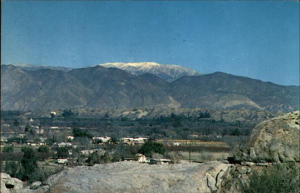 H-1664 Hemet San Jacinto Valley with snow capped San Gorgonio in the distance. Color Photo by Louis & Virginia Kay Columbia Wholesale Supply, 11401 Chandler, North Hollywood, Calif. 57445 Published and Distributed by Columbia HERE
