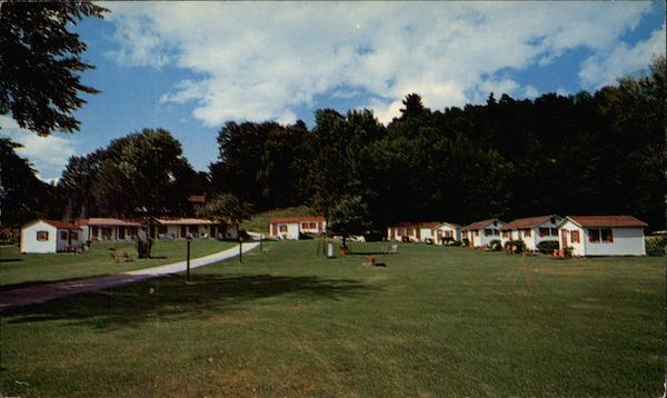 | Mr. and Mrs. Lewis K. Bass Welcome you to The Red Door U.S. 7 -- Pownal Center, Vt. 18 Modern Units -- beautifully furnished -- Automatic Gas Heat -- Private Showers. Relax on Spacious Lawns and enjoy the beautiful scenery. Restaurant on premises -- Lake 1 1/2 Miles Color by Frank L. Forward |
