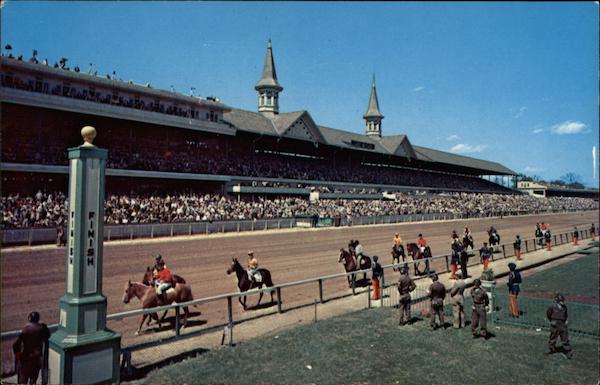 A view of the world renowned race track showing its famous spires. The Kentucky Derby, America's most classic race for 3-year-old thoroughbred horses, is run here each year