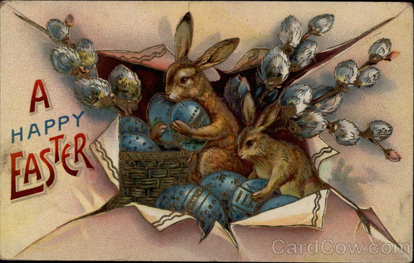 Bunnies, Eggs and Pussy Willow Burst From Envelope