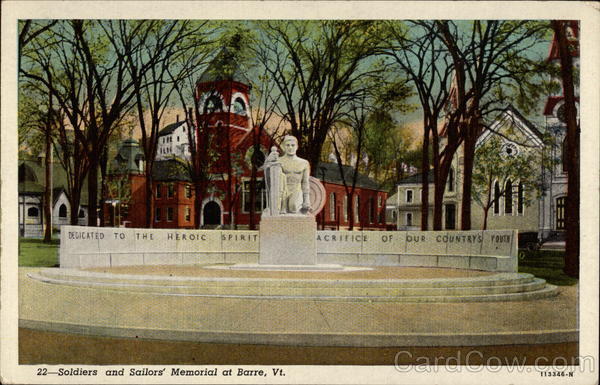 Front: DEDICATED TO HEROIC SPIRIT ACRIFICE OF OUR COUNTRYS YOUTH 22-Soldiers and Sailors' Memorial at Barre, Vt. 113346-N Back: LINCOLN-LILLIE, MONTPELIER, VT. 1,9