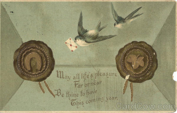 Front: May all life's pleasure Far or near Be thine to have This coming year. K Back: 1906 EB 7 AM Cari No the address onk CONN 1906 16-PM FEB 13 RTFORD VILLE FEB13 PM 1906 Conn. 1706 FRANK COSTAG