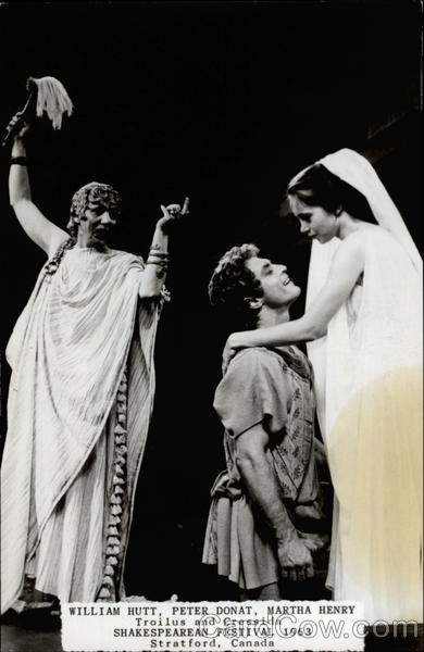 Front: WILLIAM HUTT, PETER DONAT, MARTHA HENRY Troilus and Cressida SHAKESPEAREAN FESTIVAL 1963 Stratford, Canada Back: Canadian Post-Card Co Ltd., Toronto 3.