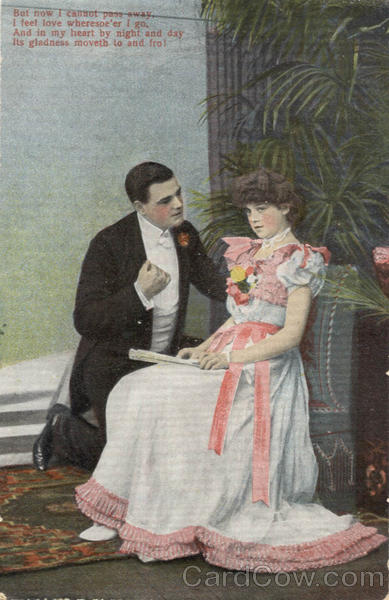 Front: But now I cannot pass away, feel love wheresoe'er I go, And in my heart by night and day Its gladness moveth to and frol Back: Serie 1250. K. V. i. B. 12.