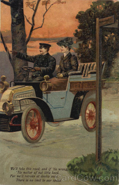 We'll take this road, and if 'tis wrong, 'Tis matter of but little heed, For we'll retrace at double pace, There is no limit to our speed.