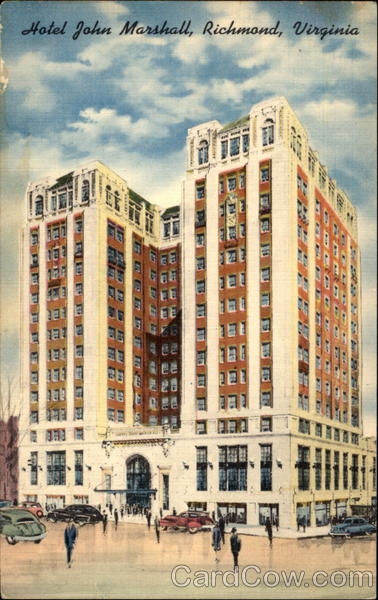 Front: Hotel John Marshall, Richmond, Virginia EE TOTEL FE FEC R IT T5 Back: Hotel John Marshall K 2018 Fifth St. at Frankiin - The Heart of Richmond "Center of Historic Virginia" A "COLOURPICTURE" PUBLICATION, BOSTON 15, MASS., U. S. A.