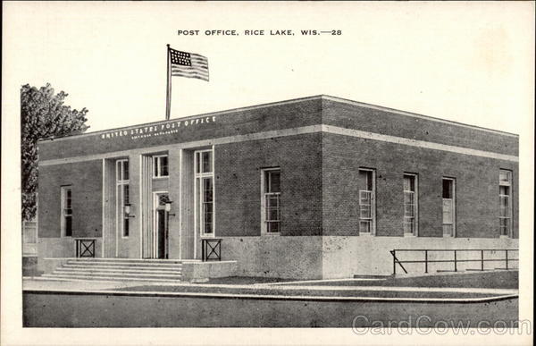Front: POST OFFICE, RICE LAKE, WIS.-28 VNITED STATES POST OFFICE Back: CO 28016 MADE IN U. S. A. BY E. C. KROPP CO., MILWAUKEE, WIS. ---(EEB)