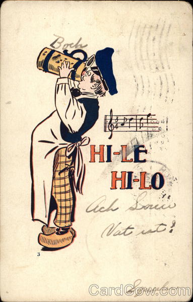 Front: Boch HI-LE HI-LO Ach Borice Vat ist? Squale Back: 2061 Wd G WINDS CAR MAR 18 8-30A 07 19 CONNO NERIEN 1002 UNITED STATES OF 1706 FRANKLIN 17:00 Louis Stogie Windso Com NNO 0