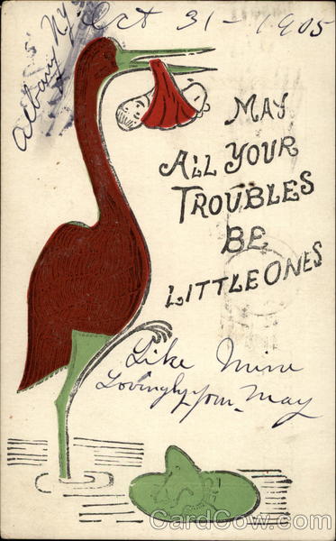 Stork delivering a baby