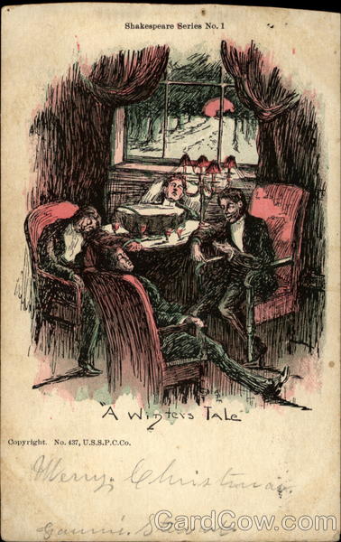 Front: Shakespeare Series No. 1 A Winters Tale Copyright. No. 437, U.S.S.P.C.Co. Merry; Christian Gams. Stewart. f Back: DEC 22 9- PM'06 NERIEN ADOS UNITED STATES OF AMERICA 1706 FRANKY STAGE ENT Min. Maiz. Birdley 1479 Eesture st August bu