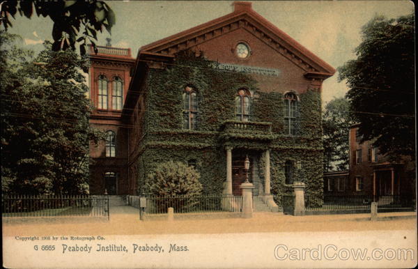 Front: GABODY INSTITUTE Copyright 1905 by the Rotograph Co. G 6665 Peabody Institute, Peabody, Mass. Back: 9,00 KAJ #228 The Rotograph Co., N. Y. City. (Germany.).