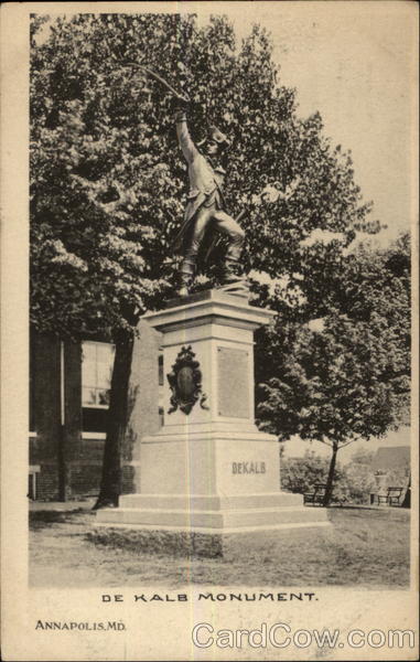 Front: DEKALB DE KALB MONUMENT ANNAPOLIS,MD. Back: Here, Domestic 1 Ot. Forelgn 2 Cts. THE NLBERTYPE CQ, BROOKLYN, N.Y.