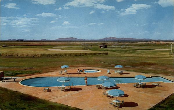 Baseball-and-bat Shaped Swimming Pools with Four Training Diamonds and the Observation Tower as a background, show only part of the recreation areas of the San Francisco Giants Spring Training Headquarters