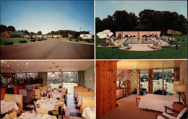 Motel and restaurant and gift and antique shop; U.S. 45 E, Fulton, Ky.; SO. Fulton, Tenn., Phones: 479-1321 Heated swimming pool - 10 acre lawn and playgrounds - croquet - tennis courts - shuffleboards - private sun terraces - tile bath and shower combination - room controlled central heat and air-conditioning - free TV - room telephones, Beautyrest mattresses - wall-to-wall carpets. Excellent food served - 6 A.M to 10 P.M |