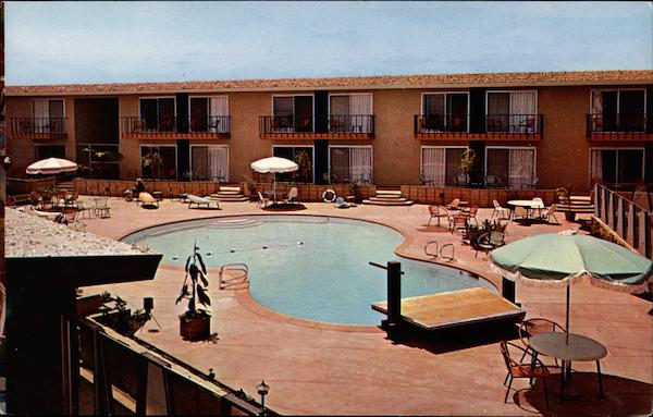 Beautifully furnished rooms and suites, room phones, TV, individual air conditioning, centrally located in southern California. Restaurant, cocktail lounge, coffee shop, barber and beauty shop. Large heated pool. Reasonable commercial rates |