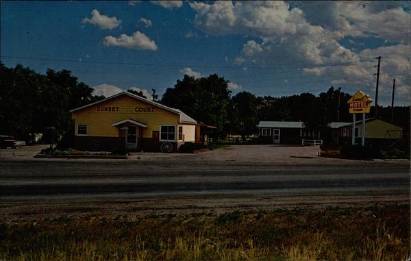 Sunset Motel, Pine Bluffs, Wyoming On U.S. #30 & Interstate #80 Phone 245-3211 17 Unit -- Free TV -- Room Phone -- Individual controlled heat and Air Conditioned Doris & Dwight Merrick, Owner & Operators Photo by: Lloyd M. Peterson, M. Photog |