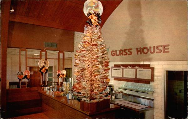 Front: GLASS HOUSE FOUNTAIN Carry Out Mina SAND Back: FAMOUS LOLLIPOP TREE IN GLASS HOUSE RESTAURANTS GLASS HOUSE Restaurants CURTEICHCOLOR R ART-CEATION REG.U.S. PAT.OFF. 7C-K91