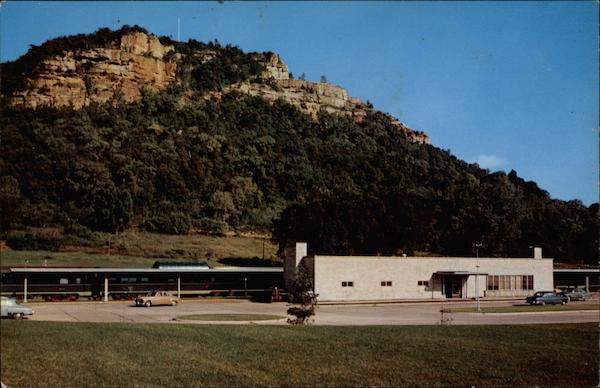 Grandad Bluff, La Crosse, Wisconsin With Burlington Railroad in foreground. Photographed by Arthur Langford Dester Genuine Natural Color Made by Dexter Press, Inc., West Nyack, N. Y. Pub. by Universal Photo Service, La Crosse, Wisconsin 79600
