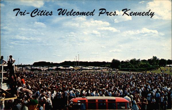 | The late President John F. Kennedy's arrival at Muscle Shoals is being awaited several hours prior to his landing by this crowd. From all over North Alabama dignitaries and officials came, including Gov. George C. Wallace. On this visit the President also visited Huntsville and Redstone Arsenal. Pres. Kennedy has been called the "Second Lincoln" |